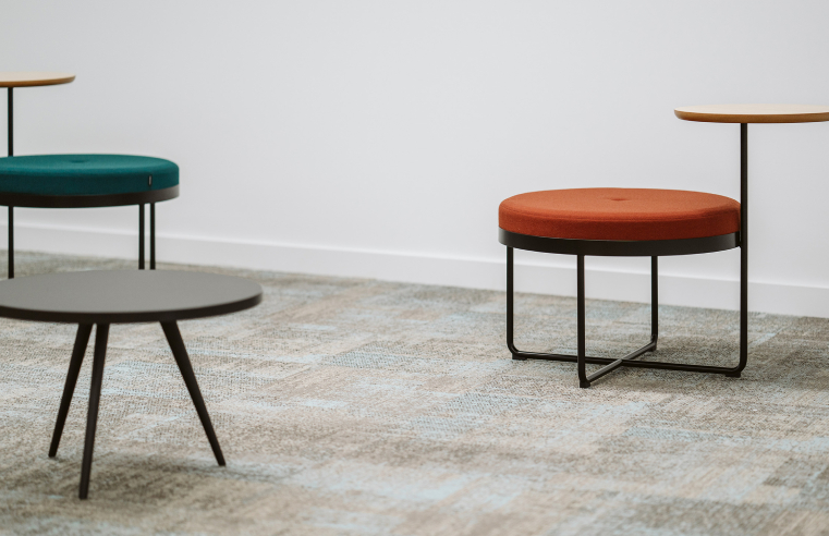 First Define is part of the revamped First collection group, a series of five patterned carpet tiles developed to bring the ideal combination of design, performance and value. Installed across workspaces in two duo-tone greys of 957 and 140, First Define’s randomised texture reflects the exposed concrete used throughout the offices.