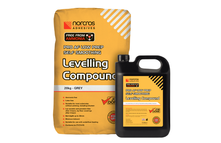 Norcros Pro AF Low Prep Self Smoothing Levelling Compound is an ammonia and latex-free, two-part levelling compound. It is suitable for use on most substrates without the need for priming.